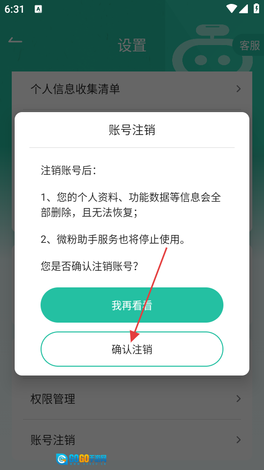 在账号注销确认页面,点击【确认注销】按钮,即可完成账号注销流程。