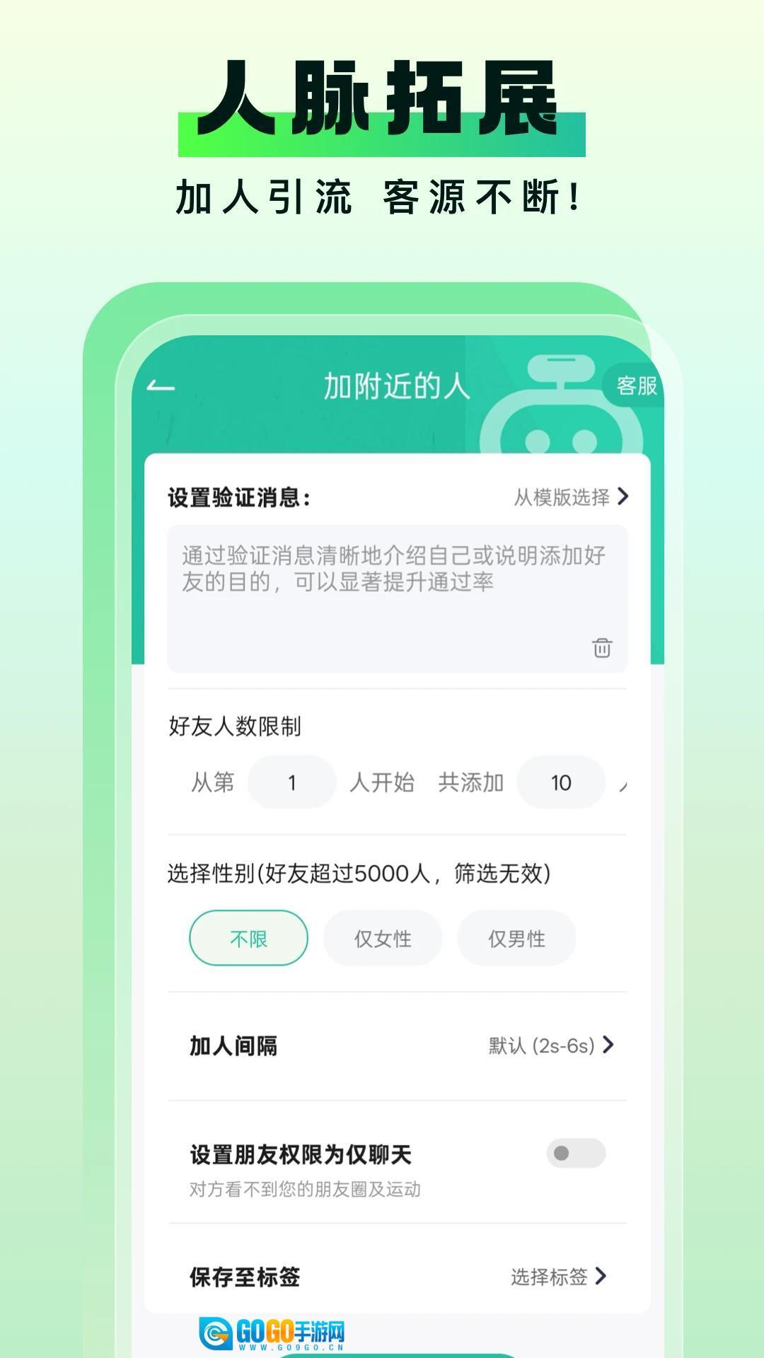 拥有智能添加好友的功能,借助自动化流程来拓展社交联系人名单,精准挑选潜在客户并搭建初步的联系沟通途径。