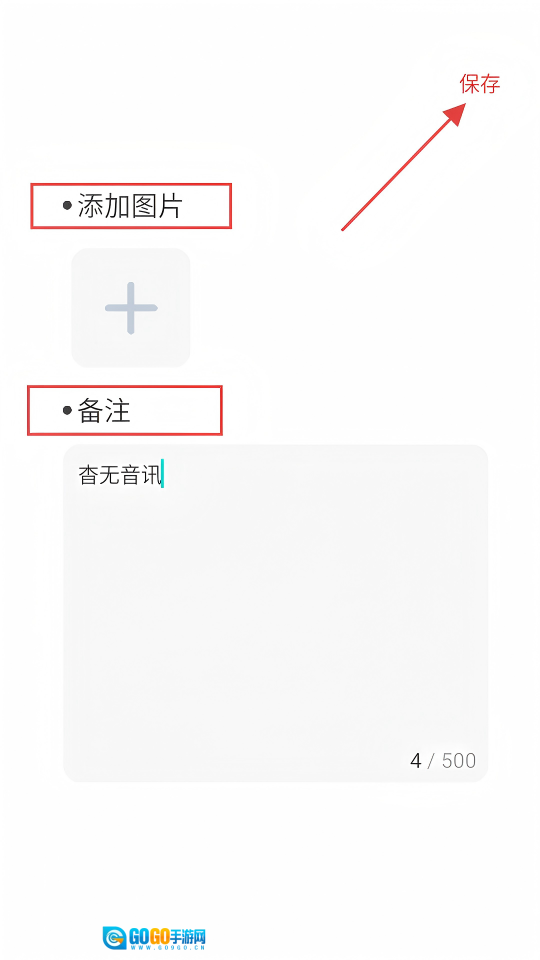 在添加页面中,您可以选择添加图片并填写备注,操作完成后点击【保存】按钮即可。