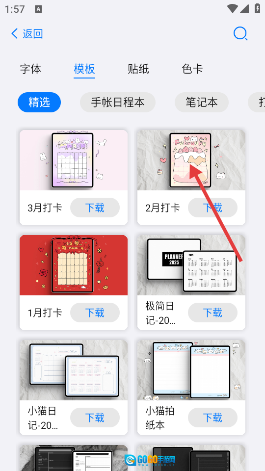 在素材中心的模板分类里,找到并选择【2月打卡】模板,然后进入该模板的详情页面。