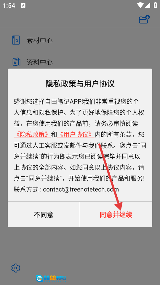 在隐私政策和用户协议的弹窗里,点击【同意并继续】按钮,就能进入应用的主界面。