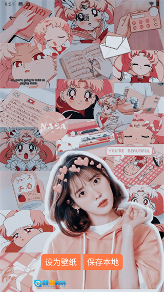 在壁纸详情页面,你可以点击【设为壁纸】按钮把它设置成设备的壁纸,也能点击【保存本地】按钮将其保存到手机里。