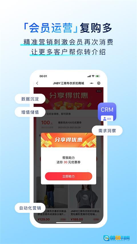支持会员卡管理、积分系统、标签分类功能,以此搭建客户分层体系,从而提升客户的复购率与粘性。