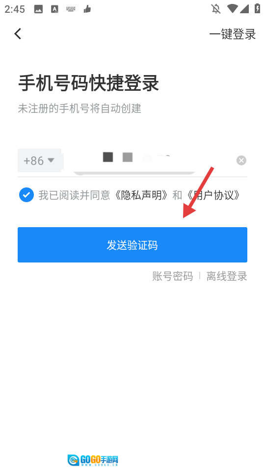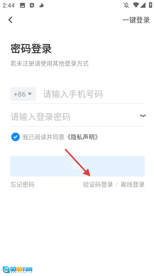 在登录页面选择【验证码登录】选项,即可进入手机号码快捷登录页面。