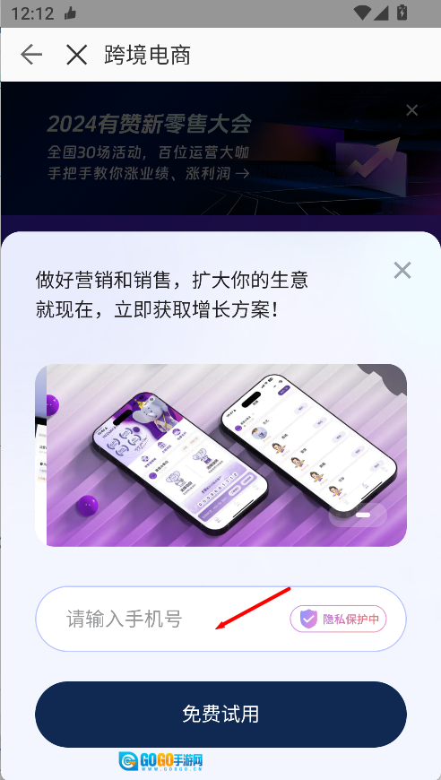 输入手机号码完成验证后,就能开启跨境功能的免费试用体验。