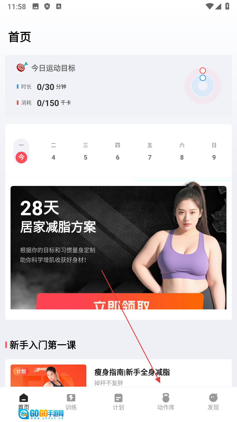 点击底部【动作库】,进入动作库页面。