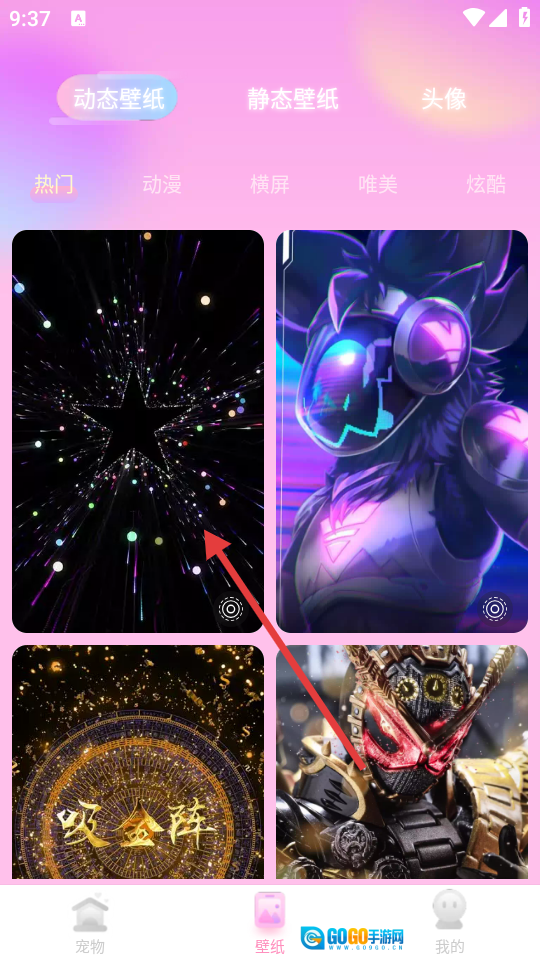 在壁纸页面,挑选心仪的壁纸,比如动态壁纸里的星光类壁纸,点击进入壁纸详情页。