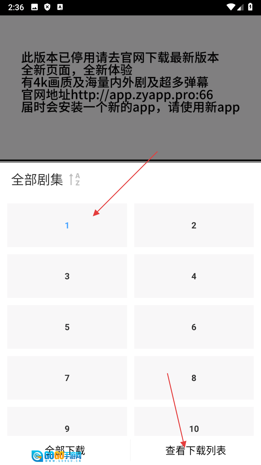 在剧集选择页面,选定【集数】后点击【查看列表】按钮,即可进入列表页面。