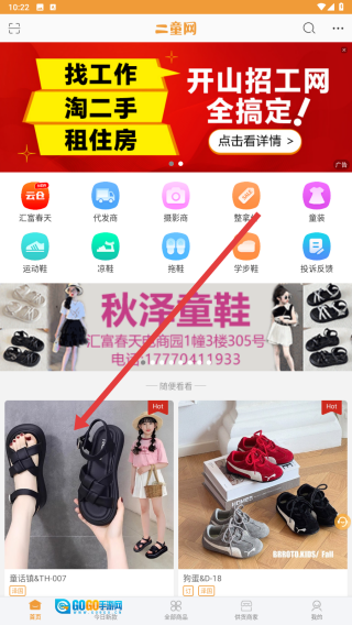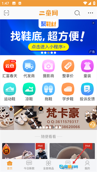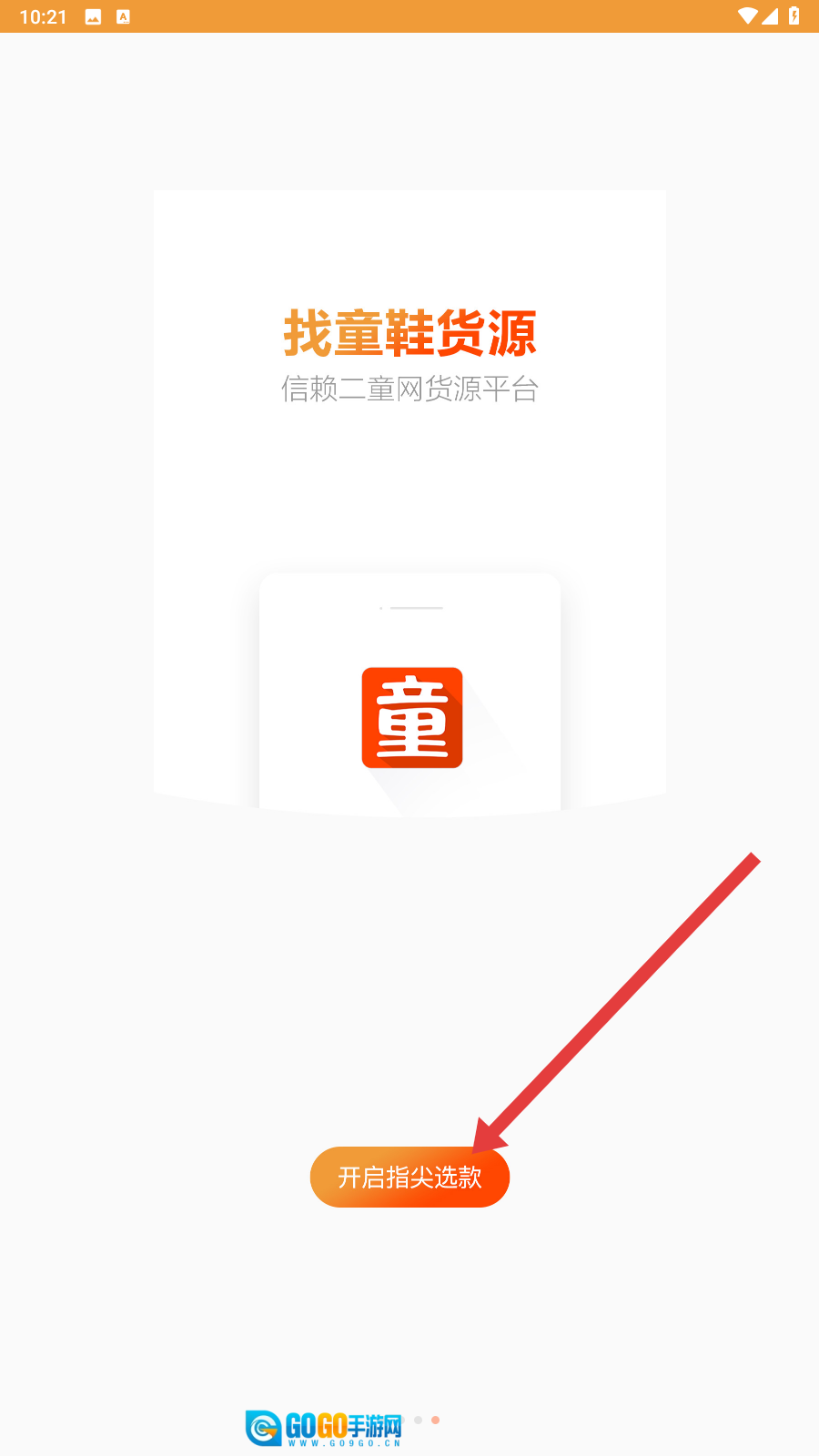 点击【开启指尖选款】按钮,即可进入二童网的童装童鞋选货页面,正式启动选款流程。