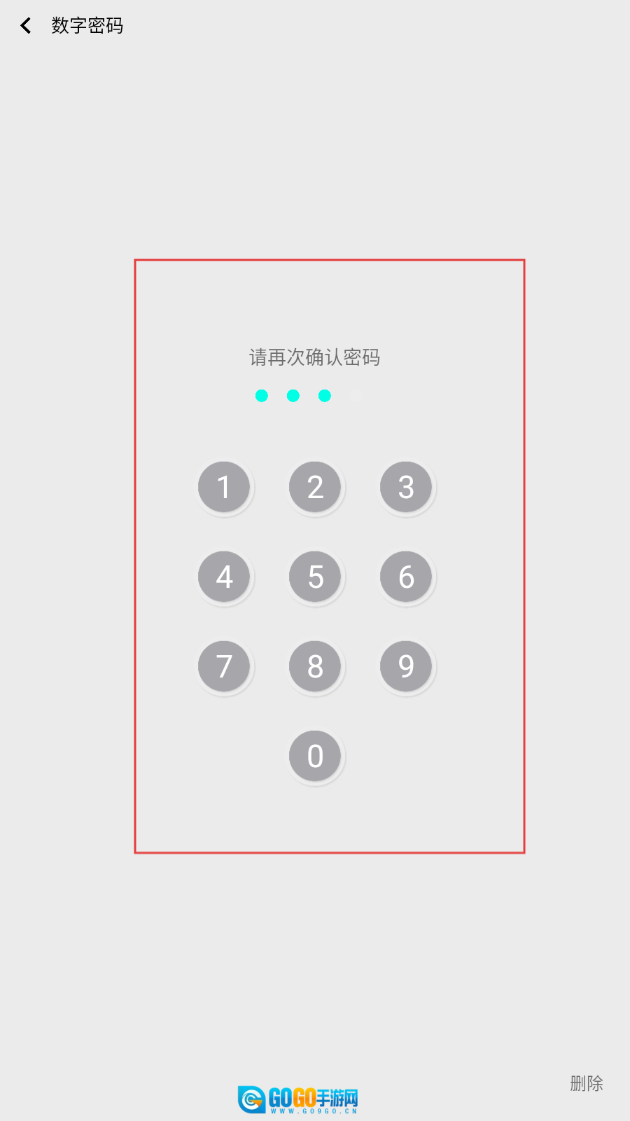 再次输入和之前一样的密码,完成确认操作,就能成功设置好数字密码了。