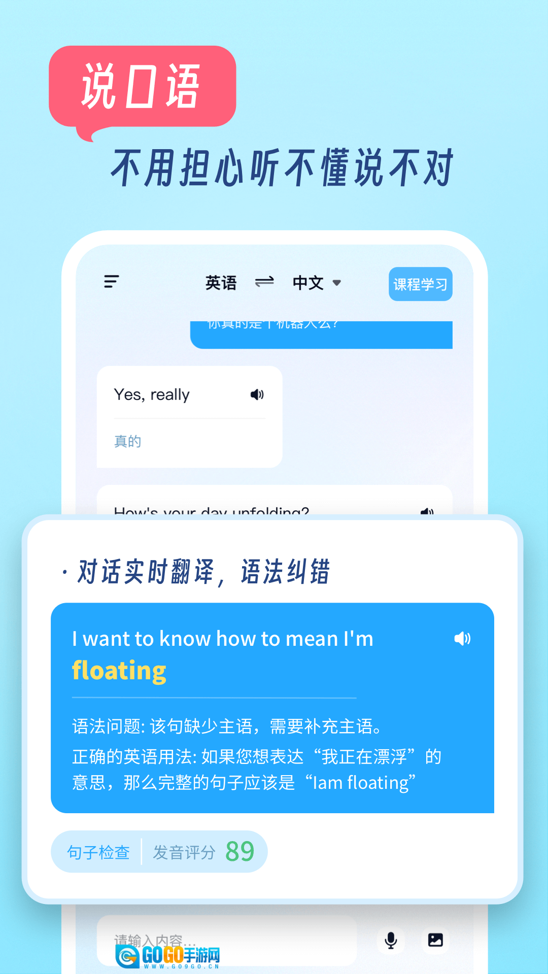《我要说英语》是一款专注于辅助英语学习的软件。它设有英语交流板块,不仅包含丰富的话题内容,还支持AI跟读功能,同时提供角色选择选项,用户可以挑选不同身份进行对话练习。此外,软件还设有音标学习板块,将音标分为元音和辅音两类,每个音标都搭配了谐音提示和例词解析。为了进一步满足学习需求,软件还配备了换话题、单词本、翻译、发音等实用工具,既能助力英语交流练习和音标学习,又能适配不同场景下的英语学习需求,辅助用户提升英语听说能力与基础水平,满足英语学习过程中多样化的练习需求和知识巩固需求。