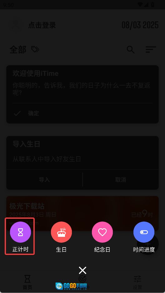 会根据设置的日期自动选择正计时或倒计时