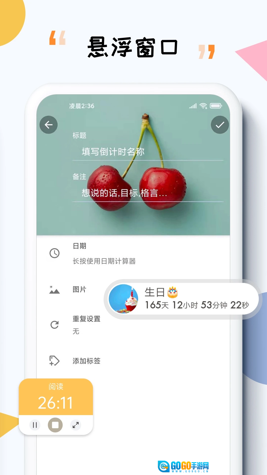 倒计时设置:支持秒级至年月日多格式倒计时