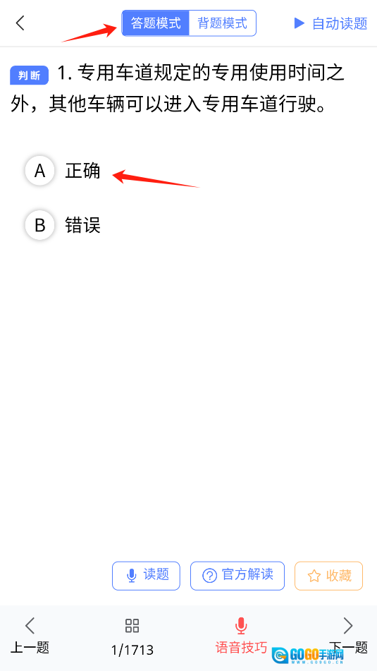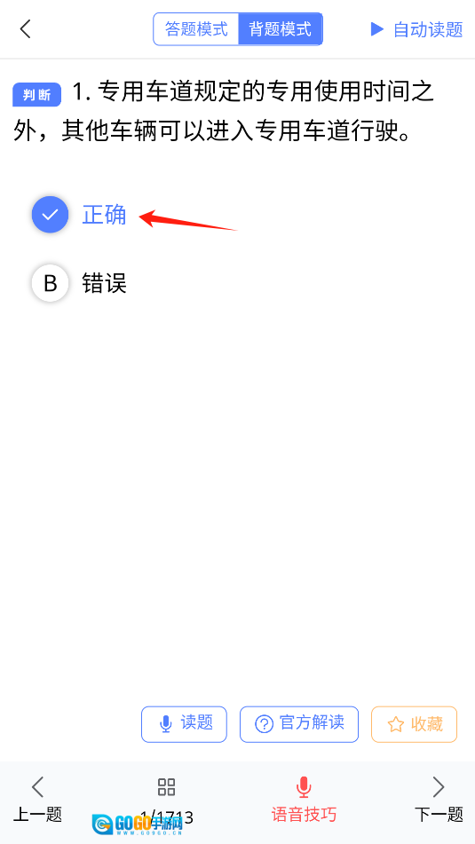 选择背题模式,完成对1713道题目的背题模式。