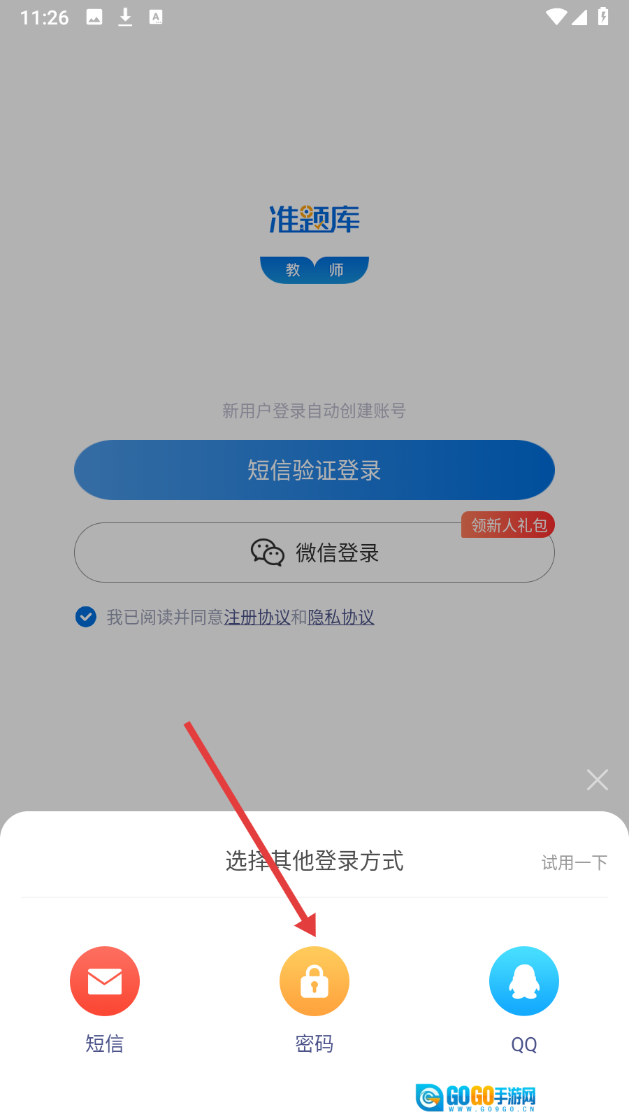 在其他登录方式里选择【密码】选项,即可进入密码登录页面。