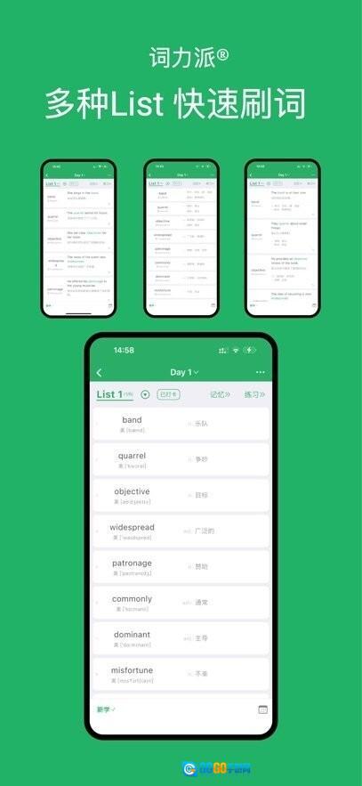 词力派,一天轻松搞定1000单词!我们结合“艾宾浩斯记忆曲线”原理与前沿学习理论,自主研发出高阶学习曲线算法,让背单词效率飙升!