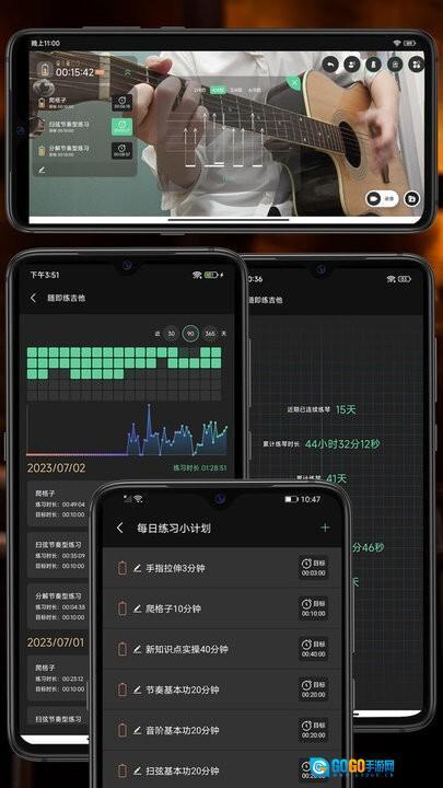 本人是个开发者也是个音乐爱好者,因疲于生计,忽略了练吉他大业,因为工作太累或者就是借口吧,练琴一直不规律,想起来就练一下,练了多长时间也没有具体去算过,吉他水平一直迟滞不前,因此写了这个吉他辅助练习工具,给自己一些规划和动力去把练吉他这件事情进行下去。 有了这个工具以来,我已经连续坚持了几个月不间断练琴了,也突破了一些瓶颈,恨自己不早点搞出来。如果你也有一样的困惑,不要错过这款吉他练习辅助工具,希望也能助你一臂之力。