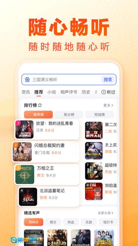 拥有丰富的有声书资源,包括历史、人文、科普等各个领域,满足不同的听书需求。