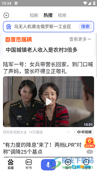 百度畅听版里既有丰富多样的短剧内容,也有贴近生活的生活视频,让你在娱乐之余还能学到不少生活小技巧;同时它具备强大的搜索功能,只需输入关键词就能快速找到所需内容,提升了信息获取效率;此外还有一键语音播报功能,即便在忙碌或视力不便时,也能通过听觉接收最新新闻资讯,保持信息同步。