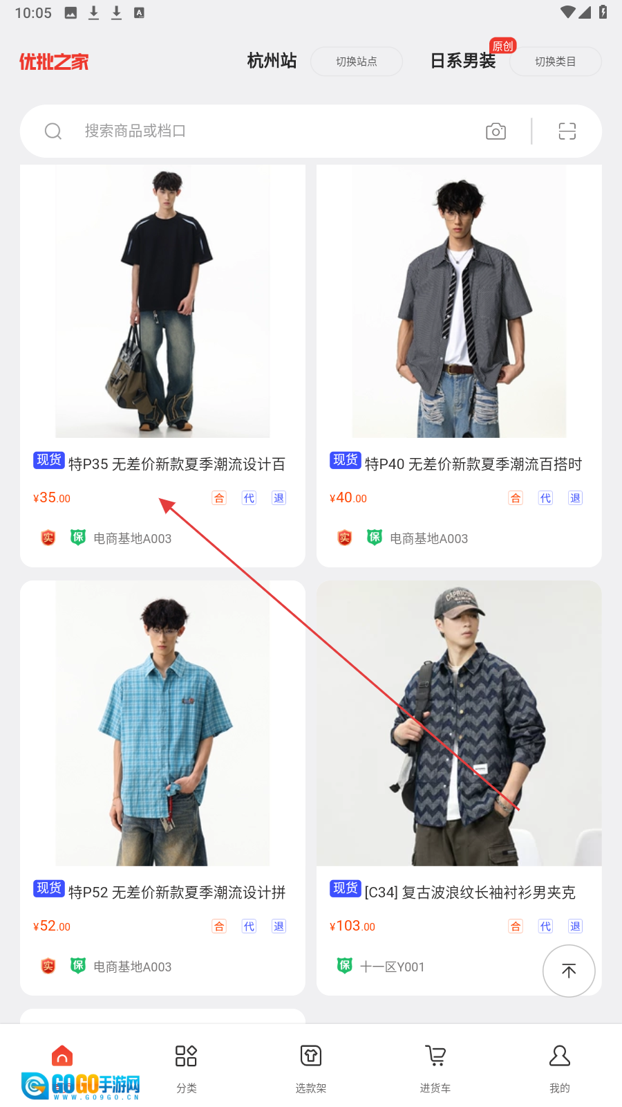 在类目选择页面,挑选【日系男装】这一分类,随后进入日系男装的商品展示页面。