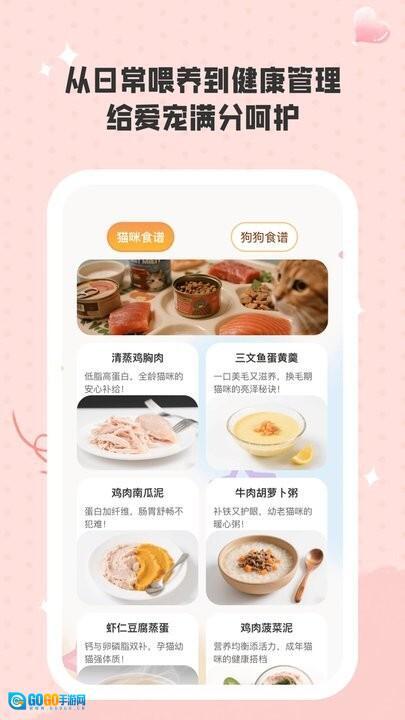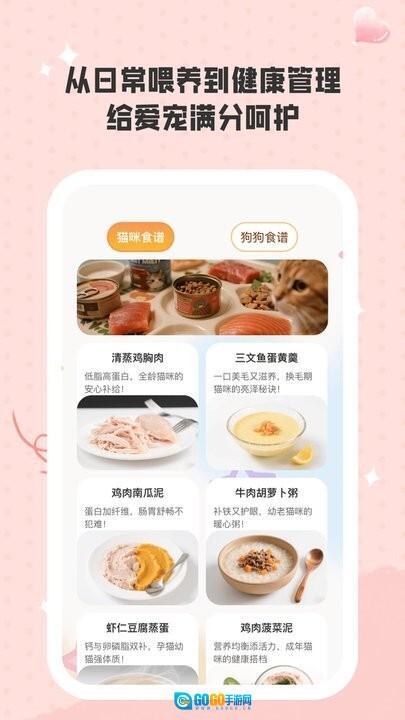 知识与食谱:汇聚养宠干货,还有猫咪、狗狗等专属科学食谱,不用再盲目找攻略。