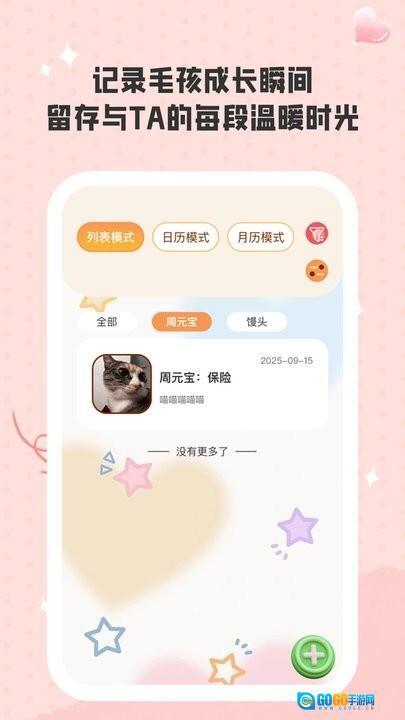成长记录:提供列表、日历、月历等多种展示模式,方便随时记录和保存与宠物共度的温馨瞬间。