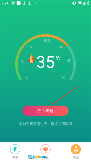 当手机温度过高时,点击【立即降温】按钮,即可启动降温操作。