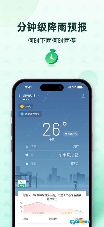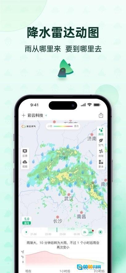 彩云天气Pro是依托气象雷达图,借助人工智能算法实现分钟级降水预报的全球先行者。