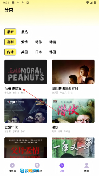 首页点【分类】,进入分类页筛选影片。