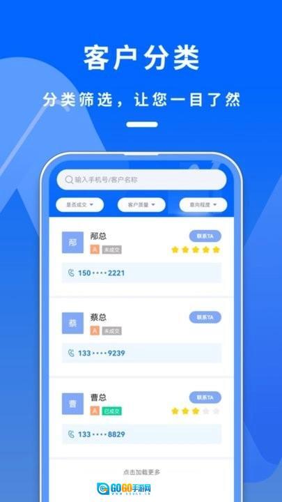 是专业的电销管理系统,对存储的所有客户联系电话进行分类管理,可以根据分类查找不同的联系人;可以使用标签以及分类等多种工具管理客户,从而能够实现个性化客户信息管理。