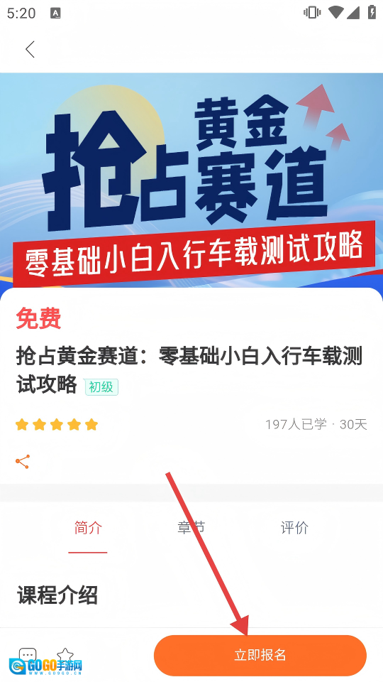 在课程详情页面,点击底部橙色的【立即报名】按钮,即可进入登录页面。
