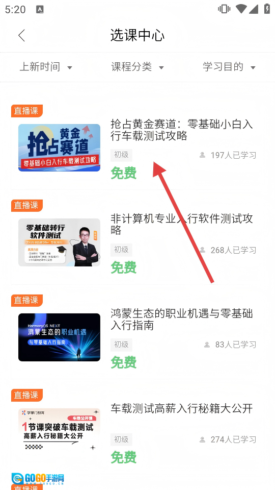 在首页找到【精品直播课】板块,点击其右侧的【更多】按钮,即可进入选课中心页面。