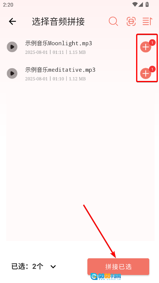 选择需要拼接的音频,点击拼接已选