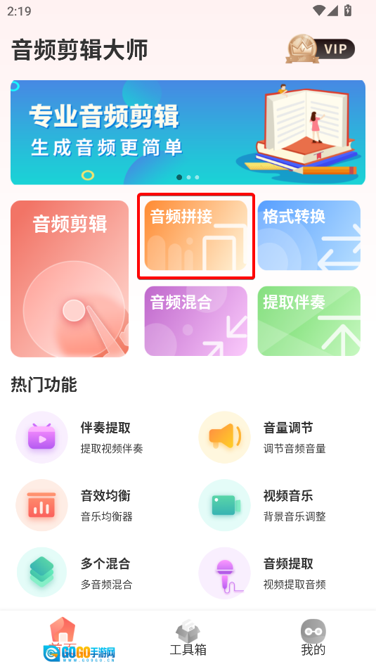 打开音频剪辑大师,点击音频拼接