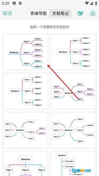 点击顶部【+】按钮,进入思维导图样式选择界面。