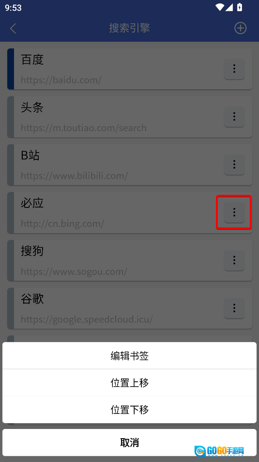点击搜索引擎选项