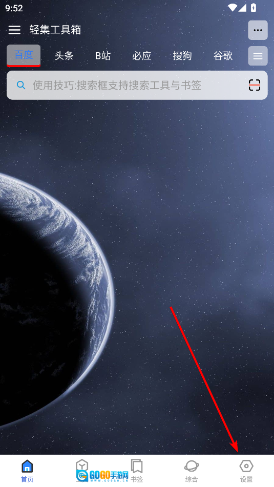 打开轻集工具箱,点击右下角的设置