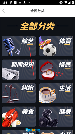在分类界面点击【综艺】,进入综艺分类页面。