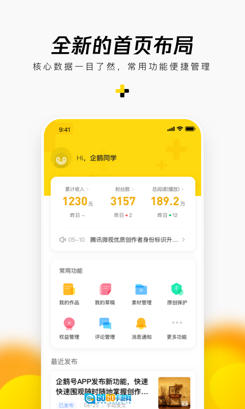 企鹅号作为一款为自媒体平台量身打造的运营辅助工具,致力于帮助自媒体、企业、政府单位及传统媒体提升曝光度。它支持用户在多平台创作内容,以此扩大品牌影响力与商业变现能力,同时助力优质内容生产者发展壮大,构建合理、健康且安全的内容生态体系。此外,企鹅号还提供多账号管理、多平台一键同步、内容编辑发布及多渠道分发等功能,能够帮助用户更好地与粉丝互动、提升知名度,并配备实时数据分析和最新数据管理机制。