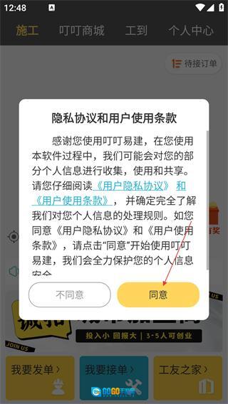在《隐私协议与用户使用条款》的弹窗里点击【同意】按钮,之后就能继续使用该软件了。