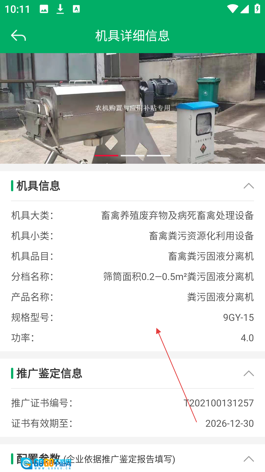 在搜索结果页面,点击【目标农机】选项即可查看其详细参数信息。