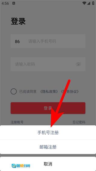 在弹窗里,点击选择手机号注册的选项,就能进入手机号注册页面。