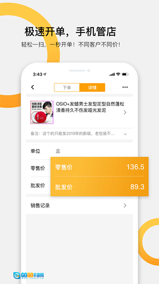 通过扫码快速识别商品并自动填充信息,一键生成销售单据,省去手写与计算环节,开单过程仅需一秒即可完成。
