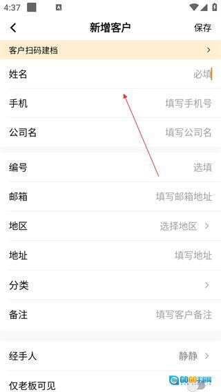 在客户新增界面,把姓名、手机这些必填信息填好,再点保存按钮,就能完成客户的添加操作了。