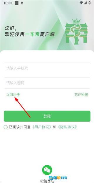 在登录页面点击立即注册选项,进入注册账号页面。