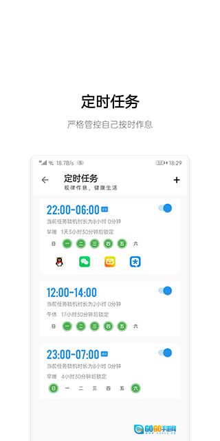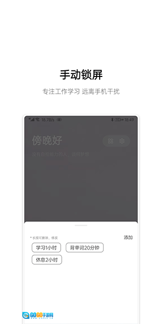 提供多样化的手机锁定模式与计时功能,涵盖强制锁屏以及阶段性限制使用等方式,助力降低对电子设备的依赖程度。
