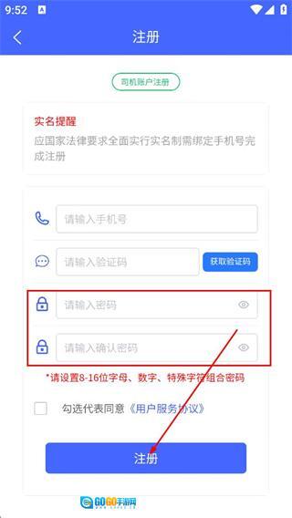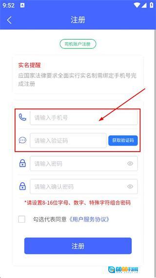 在注册页面填写手机号后,把收到的验证码输入到对应的输入框里就可以了。