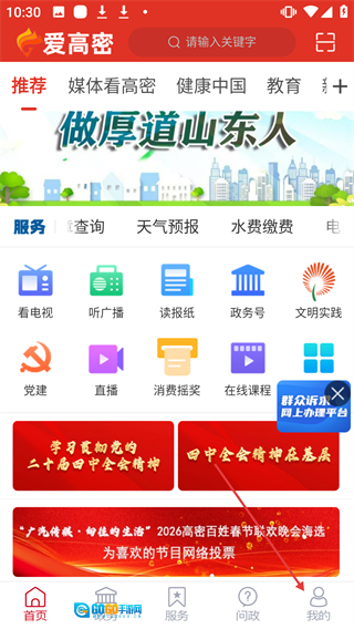 “爱高密”由高密市融媒体中心开发,是一款面向本地用户的综合服务移动应用。该客户端以促进传统媒体与新兴媒体深度融合为目标,专注于新闻资讯的传递、政务服务的拓展以及便民生活功能的优化。平台整合了本地最新的时政民生动态、特色电视节目直播与回看、线上政务服务入口、便民生活工具等核心内容。用户通过“爱高密”,既能及时了解权威政策解读和本地新闻,也能在线观看本地电视频道;同时,还可借助问政板块反馈问题,直接在手机上完成各类政务事项的办理。