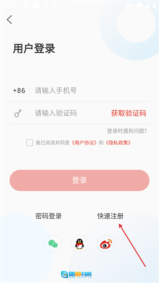 在用户登录页面点击【快速注册】,进入注册界面。