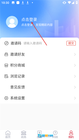 在个人页面点击【点击登录】,进入登录界面。